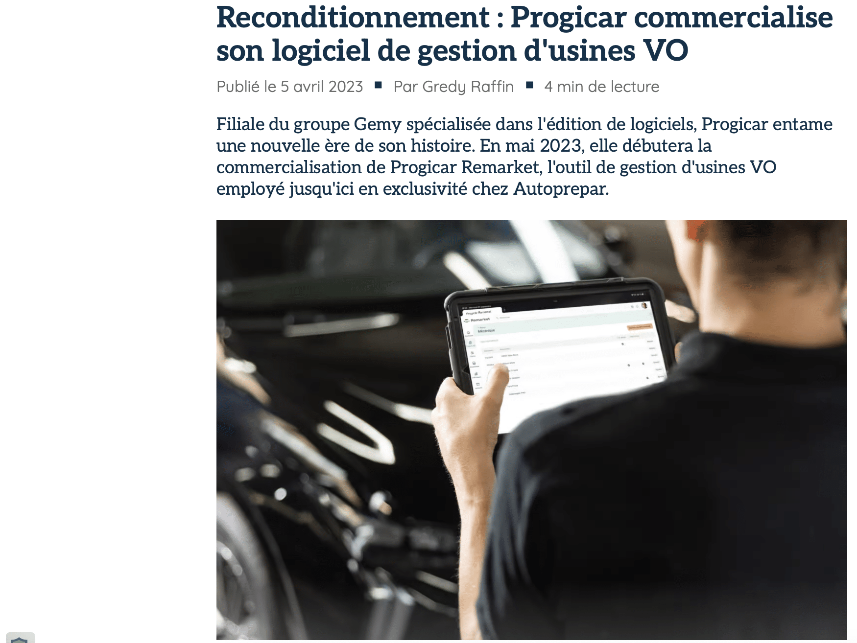 Pierre Bellugue, now head of the new Seclin center, underlines the importance of this collaboration: "Thanks to its simplicity and relevance, Progicar Remarket enables us to improve and accelerate our reconditioning processes. Particularly when it comes to exchanges: the interface dedicated to customers enables them to easily submit their mandates, validate estimates and track the progress of their vehicles. This increases customer satisfaction, reduces the risk of error, and saves us precious time. What's more, the push-flow logic means that each employee spends as little time as possible looking for what to do, and thus optimizes their working time.